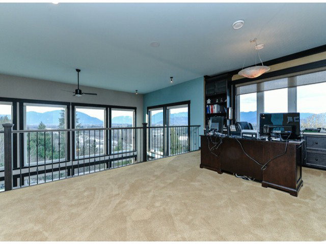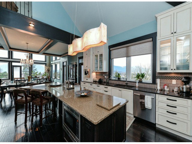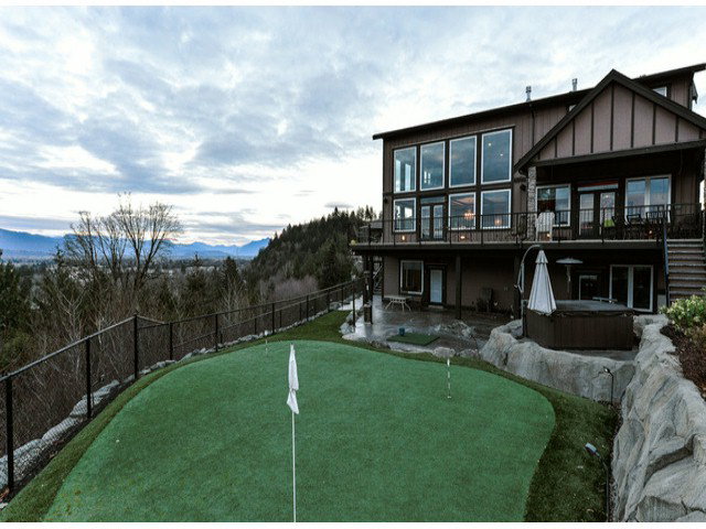 Showstopper! Stunning 7000 sq.ft. home w/triple garage, outstanding panoramic river, mountain & valley views, wrap around deck, hot tub, indoor & outdoor waterfalls, dog kennel, putting green, gorgeous gourmet kitchen w/pot filler over gas range, b.i. espresso & microwave, paneled fridge, island fridges, warming drawer, wall ovens & luxurious master retreat ion main w/2 way f/p, french doors, incredible walk-in glass windows, showcasing stunning views, hardwood, tile marble extraordinary wet bar, gym, billiards rm, wine cellar, guest rooms & nicest theatre ever! Wow factor beyond compare but warm and inviting.