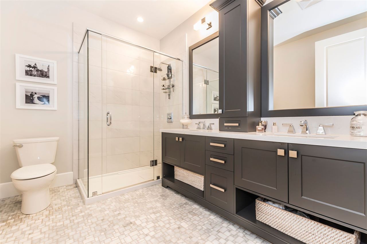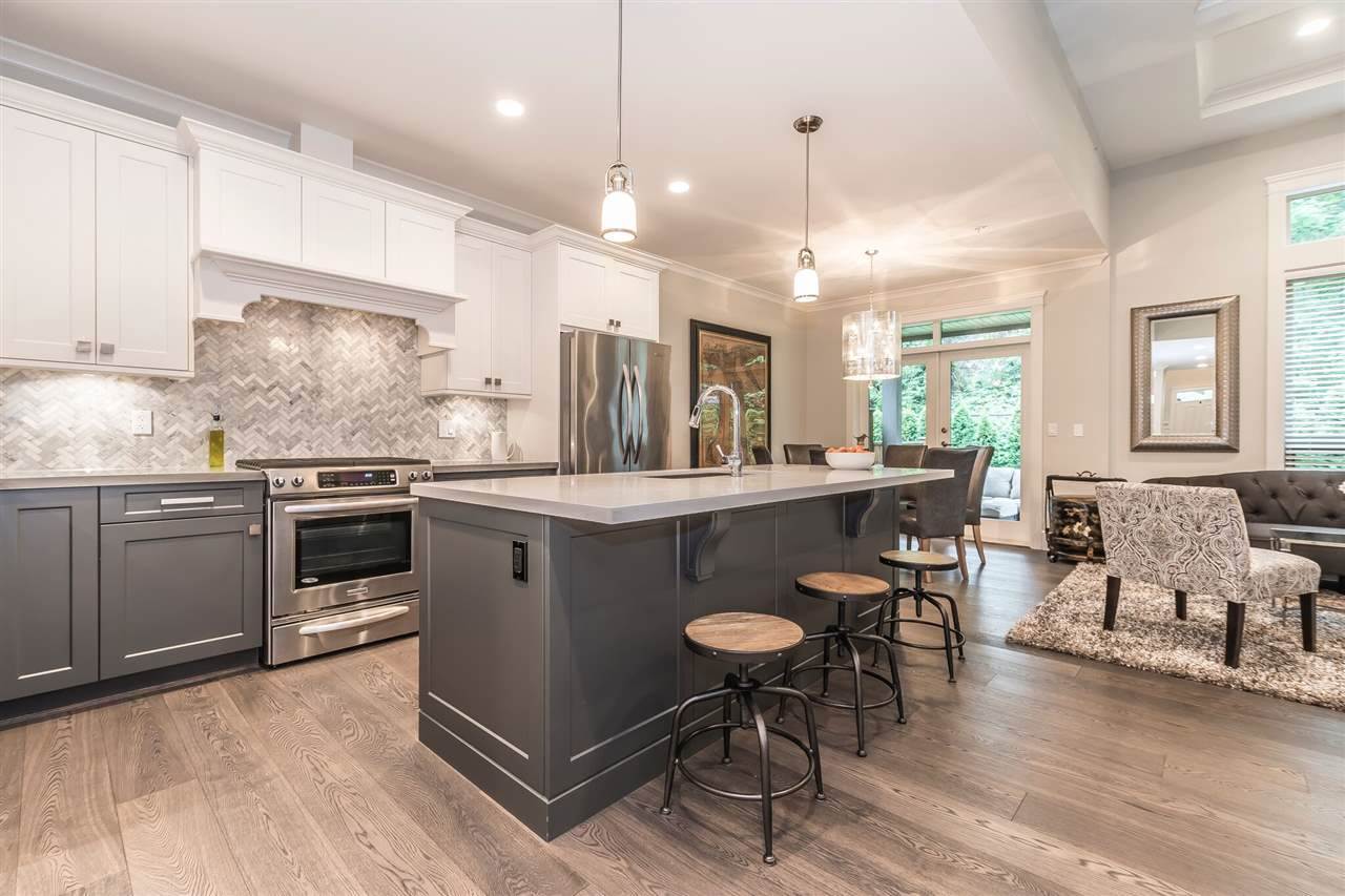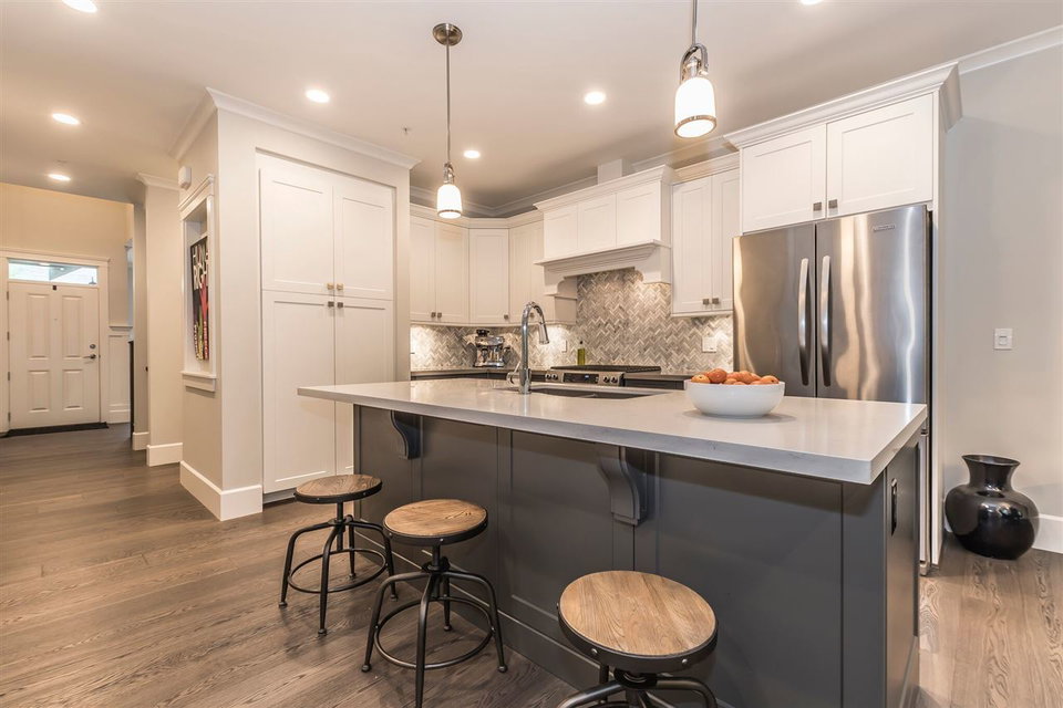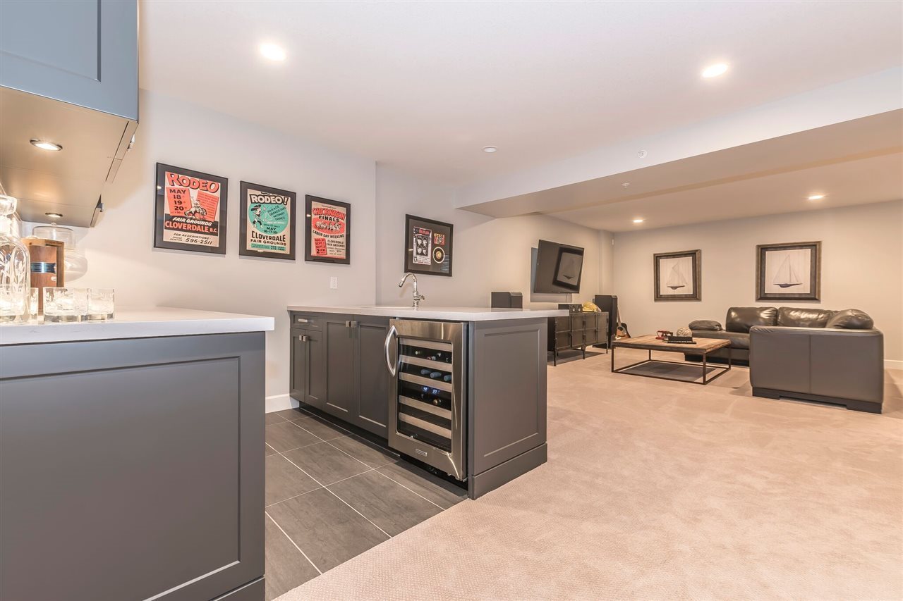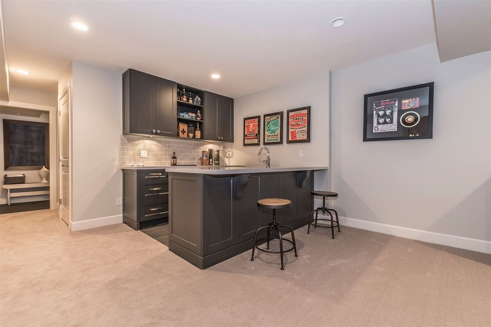 MCBRIDE STATION | 4 Bed & 4 Bath | FORT LANGLEY Very few listings come up in this exclusive townhouse complex located just steps from historic Fort Langley village. At over 3000 sq/ft this stunning unit is the largest unit in the complex. It is the desirable “Charles Plan” featuring the master on the main, a total of 4 bedrooms, 4 bathrooms, wide plank engineered flooring, home theatre area, gym featuring Nike Grind flooring, executive Great Room with 15″coffered ceilings, triple glazed oversized windows, entertainment kitchen. Also heat pump/Air conditioning, luxurious ensuite with heated floors. Finished basement hosts custom bar with quartz countertop and wine fridge. Two car garage is pre-wired for electric car charger. French doors open to private fully fenced yard.