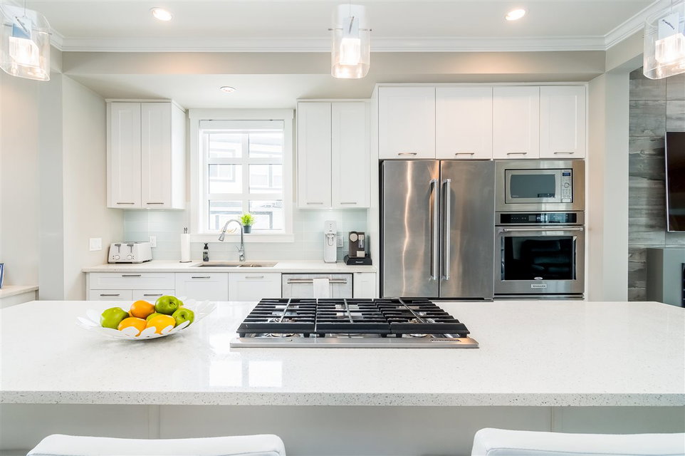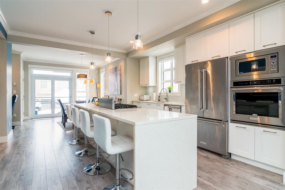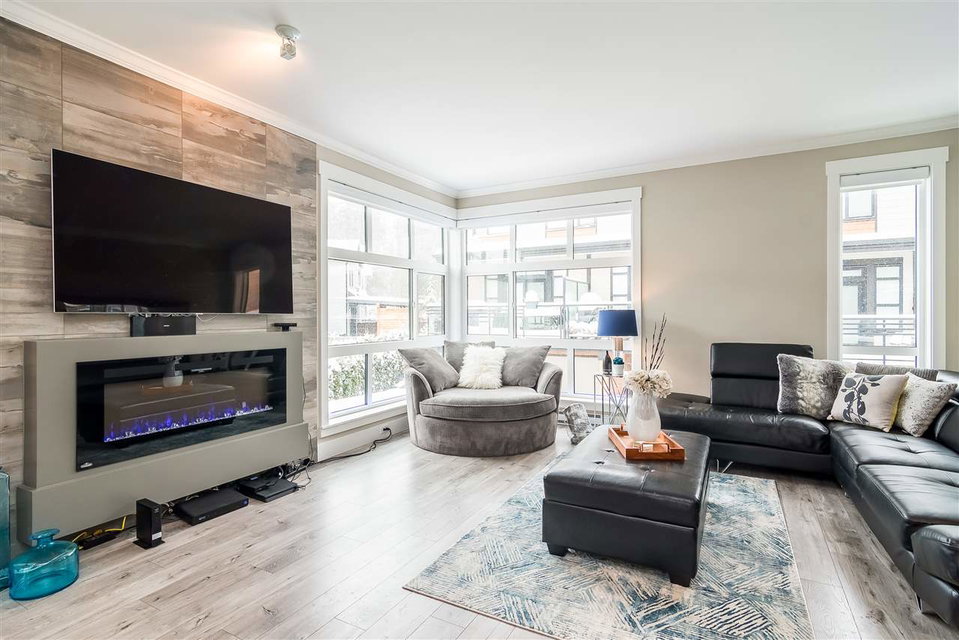 Bose at Harvest Farms | 3 Storey, End Unit! | 1,535 Sq/Ft | 3 Bed & 3 Bath | Incredible Yard W/ Hot Tub | Cloverdale | Welcome to your new home! Nestled away, this incredible community of modern townhomes. Unlike any other, this unit offers an illustrious, large private yard, perfect for entertaining. Main floor features stunning quartz island w/ gas range and a beautiful modern white kitchen with open concept living, that flows into your dining and living rooms. Massive electric fireplace, set on a gorgeous Italian porcelain backsplash, no shortage of natural light as this unit has extra wide wrap-around windows on both main and upper levels. Upstairs ft, 3 beds & 2 baths. Spacious vaulted Master, with floor to ceiling windows. You have to see for yourself.