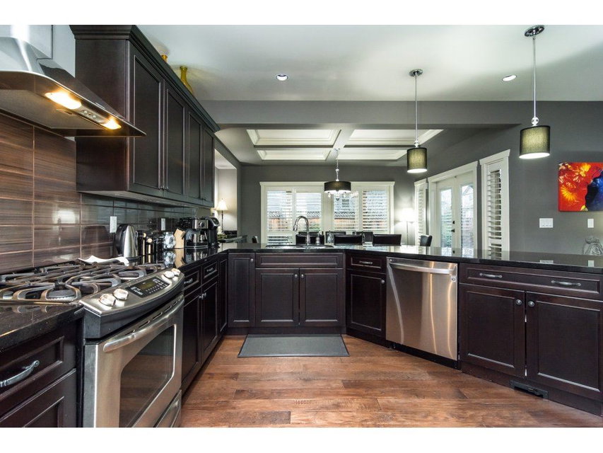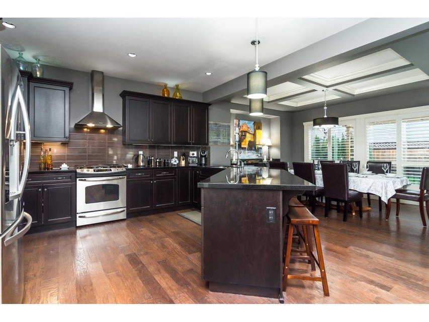 Your dream-home is here! 2 storey/w bsmnt corner lot home features 5 beds & 4 baths w/ over 3,828 Sq/ft & a 5,000+Sq/ft lot with a beautifully manicured backyard, large covered gazebo, natural gas BBQ hook-up & separate basement access! Central A/C throughout & beautiful engineered hardwood that carries throughout the main. Spacious great room w/ vaulted ceilings & open kitchen w/ espresso stained maple cabinets, granite countertops and brand new appliances (1yr). Separate large dining room w/ coffered ceilings above exposed with lots of natural light. 4 bedrooms upstairs + vaulted master w/ensuite! Separate his/hers walk in closets, double sided gas f/p that carries into an incredible ensuite w/ his & hers sinks, frameless shower, and large soaker tub. Spacious rec room, bed & bath down.
